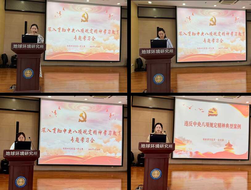 任淼传达了关于在全党开展深入贯彻中央八项规定精神学习教育的通知以及中央党的建设工作领导小组召开会议研究部署深入贯彻中央八项规定精神学习教育工作的会议精神,她强调本次学习教育于2025年全国两会后启动,7月底前基本结束,全体党员要认真学习领会习近平总书记关于加强党的作风建设的重要论述,学习领会和贯彻落实中央八项规定及其实施细则精神,推进作风建设常态化长效化,同时介绍了本次学习教育的重要意义和聚焦方向;随后,她分享了地球环境所举办深入贯彻中央八项规定精神学习教育读书班时所提出的学习要求,希望党员同志能通过本次学习教育进一步严明工作纪律、改进作风学风、锤炼党性、强化担当。