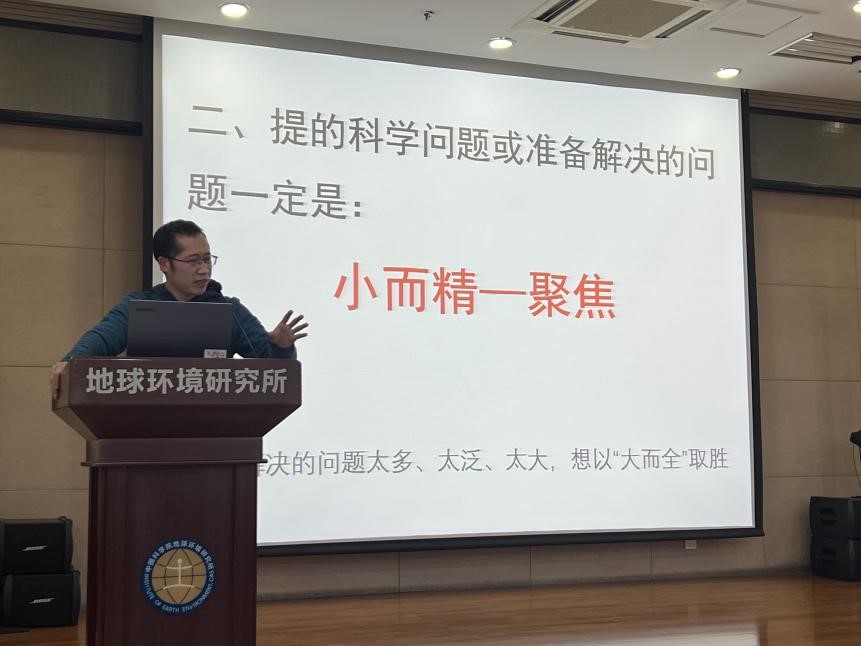 薛刚同志克服脚部骨折带来的行动不便,主动请缨站立讲述,他的语气乐观而轻松,分享内容幽默而务实,以评审人视角为核心,强调了要在形式合规的基础上以逻辑制胜,以“重塑框架、精简篇幅、聚焦核心”为主线,对从科学问题、研究内容、技术路线和研究基础等方面搭建高标准申请书的“骨架”给出实用建议;刘成程同志根据申报要求新变化,结合自身经验,系统分享了项目选题、摘要、立项依据、研究内容、研究基础与工作条件等关键问题,通过拆解申报案例文本内容,对比分析优秀案例和问题案例,直观通俗地引导大家深化理解、掌握要领,从而将理论知识有效迁移至个人的申报书写作中;李乐意同志基于基金委青年项目和面上项目的申报经验,提出要注重提早宏观布局基金申报主题,摒弃临时突击,为扎实的研究基础和完善的文本打磨留足时间,坚持聚焦小而精的科学问题,避免问题空泛和内容夸大,重视夯实研究基础,要有坐稳“冷板凳”的决心,持续深耕、实事求是,在系统梳理前人研究、透彻掌握核心方法、审慎积累关键数据基础上展示创新潜力和研究价值,提高基金申报成功率。