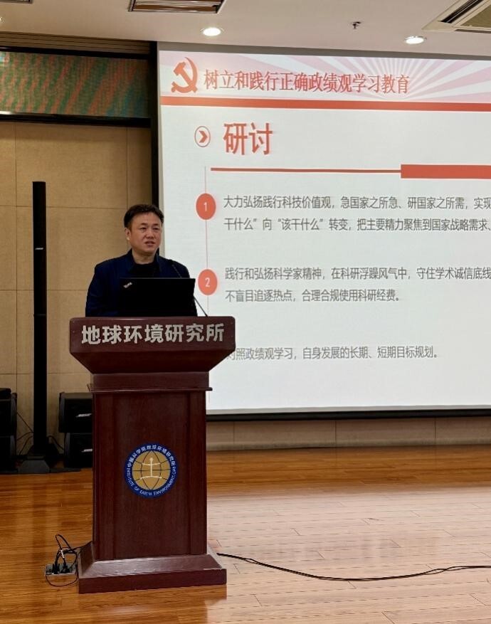 交流研讨环节,操玥,徐戈,杨雪玲,苏慧和李楠楠同志分享了学习心得。大家一致表示,在科研工作中要聚焦国家需求,不盲目追逐热点,不能因急于出成果而忽视了课题开展的重要意义,同时坚守科研诚信;在日常的工作中,要重视科研数据安全,加强对数据的管理,把国家安全观贯穿到工作、生活的方方面面;刘春卓同志做总结发言,他表示通过本次学习,要持续深学细悟习近平总书记关于正确政绩观等的重要论述,对照总书记的实践要求,检视自身在日常工作、工作作风等方面存在的不足,及时校准偏差,以正确政绩观引领干事创业,以实际行动践行党员使命担当。