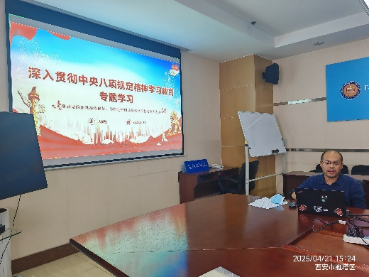 在专题学习环节,现代环境研究室党支部组织委员邢萌带领全体与会人员深入学习中央八项规定精神及其细则。会议强调,优良作风是科技创新的"生命线",科研工作者必须锲而不舍贯彻中央八项规定精神,推动党的作风持续向好,推动党中央各项决策部署落到实处,以扎实学风为抢占科技制高点保驾护航。