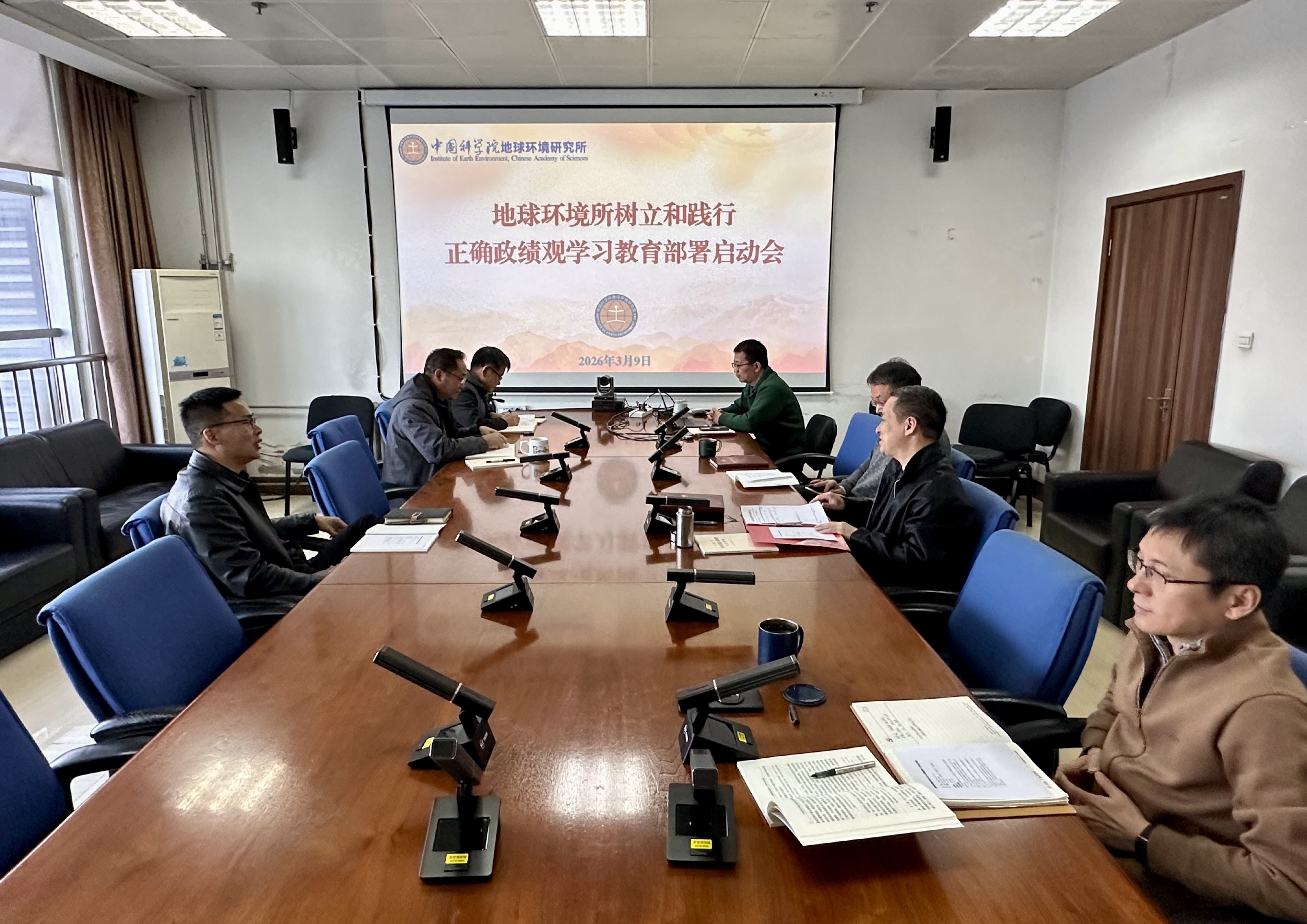 3月9日,中国科学院地球环境研究所党委召开树立和践行正确政绩观学习教育部署启动会。地球环境所全体领导班子成员、党委委员参加会议。党委书记、所长孙有斌主持会议。