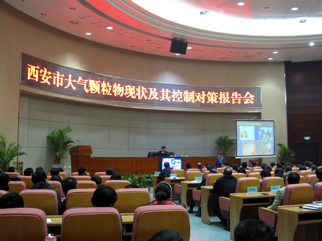 2011年12月29日上午,地球环境研究所曹军骥研究员应邀在西安市政府报告大厅做了题为“西安市大气颗粒物污染现状及控制对策”的专题报告会。西安市环保局罗亚民局长,颜昊副局长,李联盟副局长,张炳淳副局长,梁朝总工程师,科技处陈宁处长,西安市各区、县环保部门负责人及其他工作人员等220多人听取了本次报告。