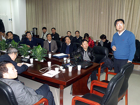 省环保厅何发理厅长等参与人员听取中科院地球环境研究所曹军骥所长关于细颗粒物研究课题的汇报