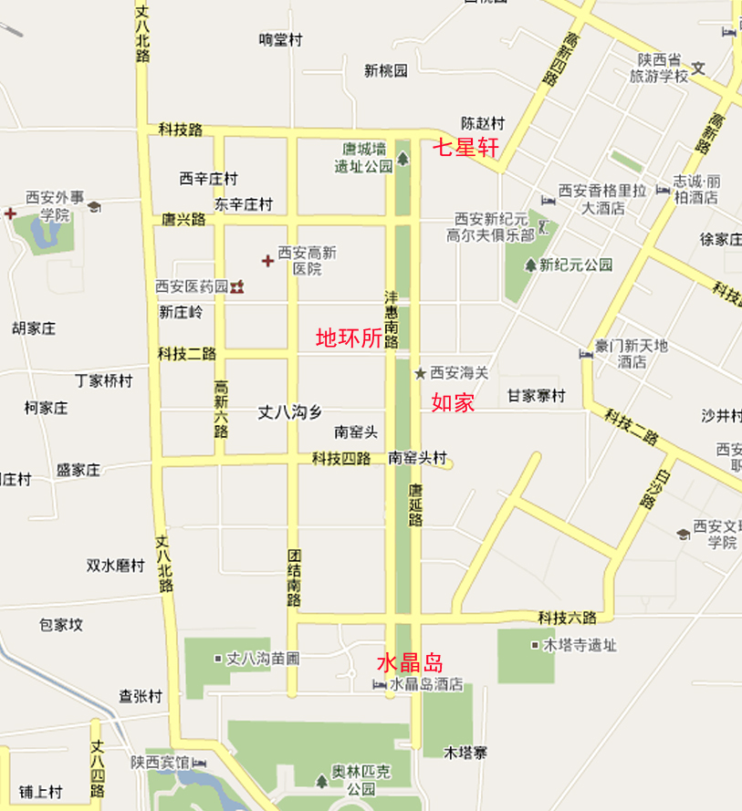 水晶岛酒店(地环所南3公里):标准双人间,280元不含早,电话:029-88159999