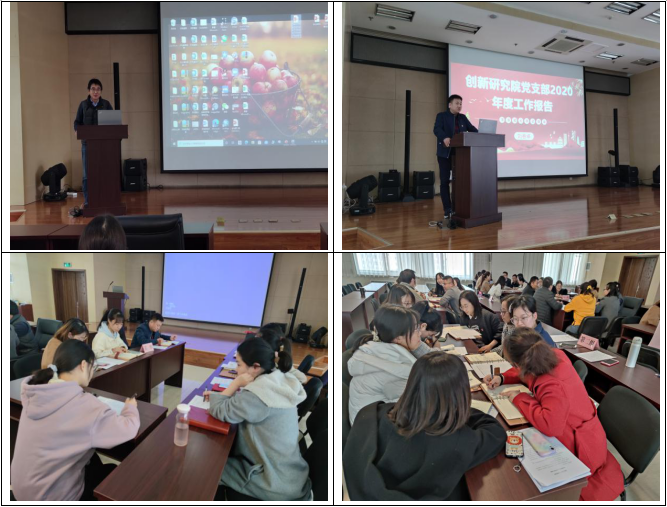 第一党支部书记刘春卓同志就创新研究院2020年第一、第二党支部工作情况向全体党员进行了报告,2020年在地环所党委的正确领导下,创新研究院党支部以习近平新时代中国特色社会主义思想为指导,以党的政治建设为统领,以提升组织力为重点,以“基层组织建设年”活动为载体,努力为实现“三个面向”“四个率先”目标任务提供了坚强的政治和组织保证。报告也对党支部建设存在的问题进行了深刻剖析,对下一步的整改任务进行了安排部署,为2021年党支部工作的顺利开展指明了努力方向。
