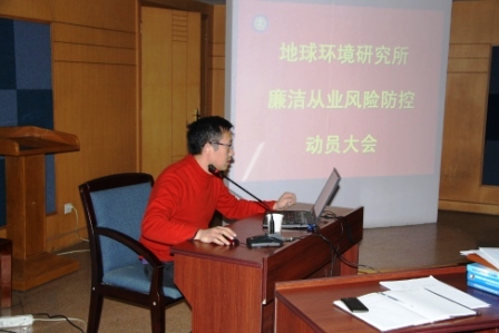 为贯彻落实中央和院党组关于廉洁从业风险防控工作的有关部署和要求,12月19日下午,地环所在报告厅召开了廉洁从业风险防控工作动员大会,曹军骥所长、所总支委员、在所职工党员及各职能部门工作人员参加了会议。
