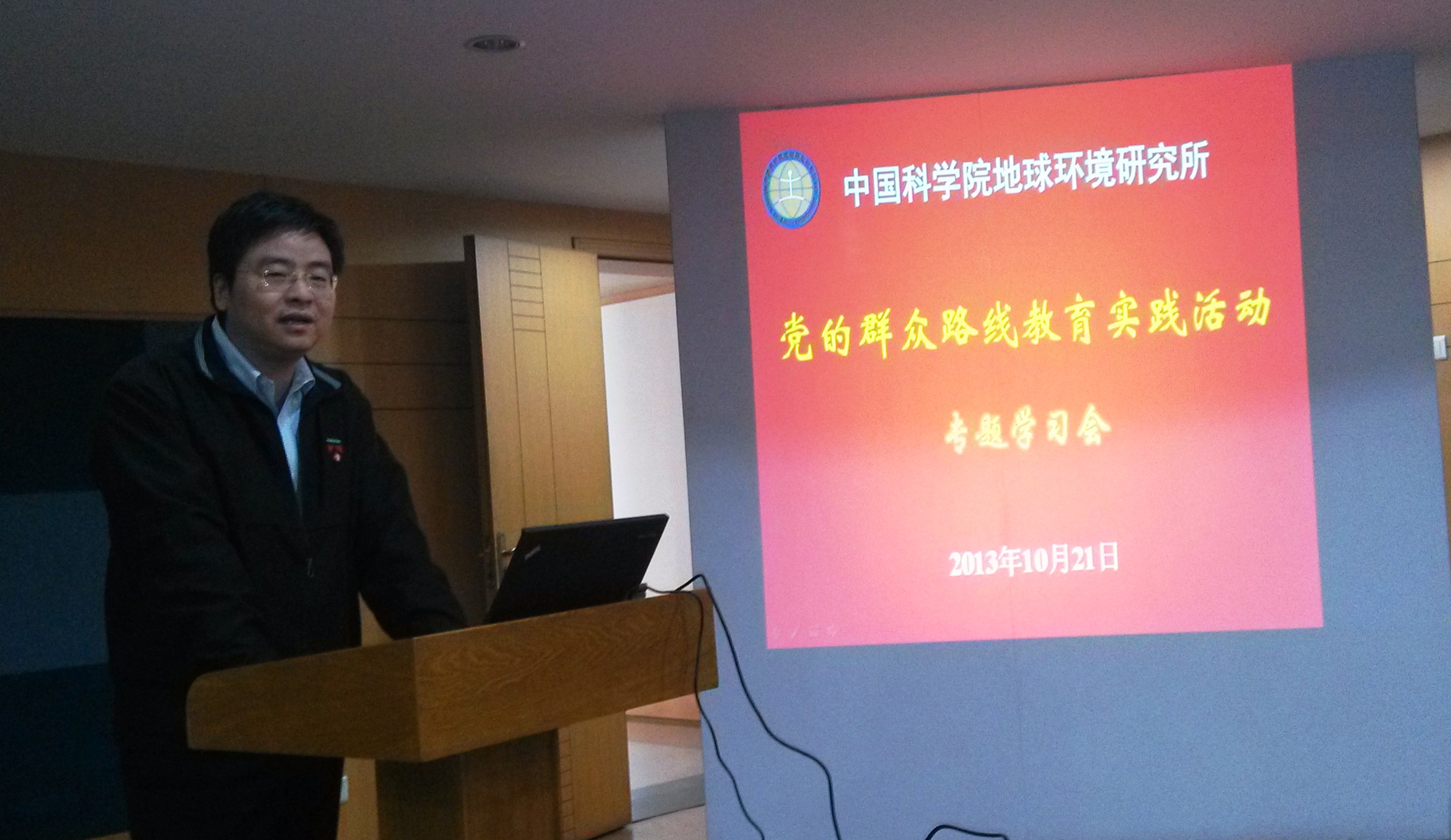 杨星科书记从党的十八大提出的围绕保持党的先进性和纯洁性,在全党深入开展以为民务实清廉为主要内容的党的群众路线教育实践活动的目的为出发点,对当前我们的国民心态、面临的一些社会问题,从理性、智慧与信任三个方面,结合科研人员的特点,深入浅出,进行了理论探讨和思想原因分析,他希望地球环境研究所所能通过此次党的群众路线教育实践活动进一步改进作风,取得实际效果,为建设世界一流的研究所而努力奋斗。