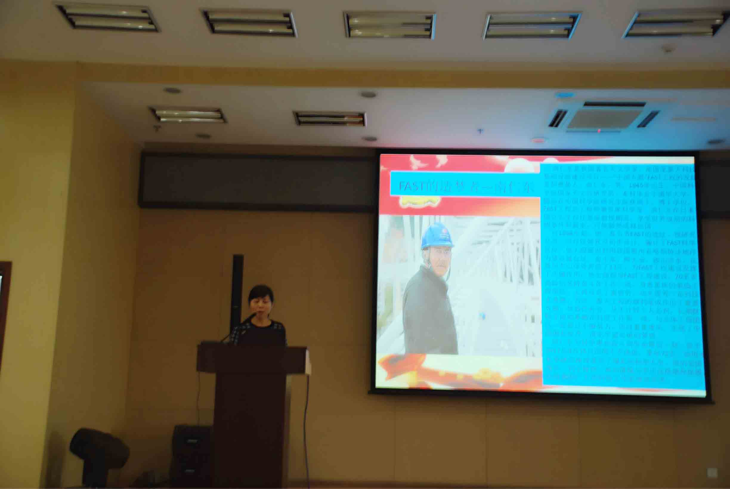 研究生党支部书记张英雯同志在党课报告中介绍了学习杰出科学家的先进事迹,并结合先进事迹阐述如何做一名合格的共产党员。张英雯同志首先介绍了著名地球物理学家黄大年,黄大年同志在8年前放弃国外的优越条件,怀着一腔爱国热情回到祖国;他带领团队在航空地球物理领域取得一系列重大科技成果,带领中国进入深地时代;紧接着介绍了我国著名天文学家-南仁东,南仁东同志是国家重大科技基础设施建设项目—“中国天眼”FAST工程的发起者和奠基人,他大胆提出利用我国贵州省喀斯特洼地作为望远镜台址,为FAST工程建设发挥了关键作用。他与全体工程团队一起通过不懈努力,实现了中国拥有世界一流水平望远镜的梦想;最后,张英雯同志总结了杰出科学家光辉事迹对我们的启示,指出作为一名中国共产党员,要时刻记住为人民服务;作为科技工作者,要秉持科技报国的理想,敢为人先,勇于创新,不畏艰难;饮水思源,不忘初心;要记住自己的梦想,记住自己为什么读研究生,为什么走上科研的道路。报告最后一项,通过两段视频《时代楷模黄大年》及《FAST的造梦者--南仁东》对两位杰出科学家的事迹和精神进行了深入学习。