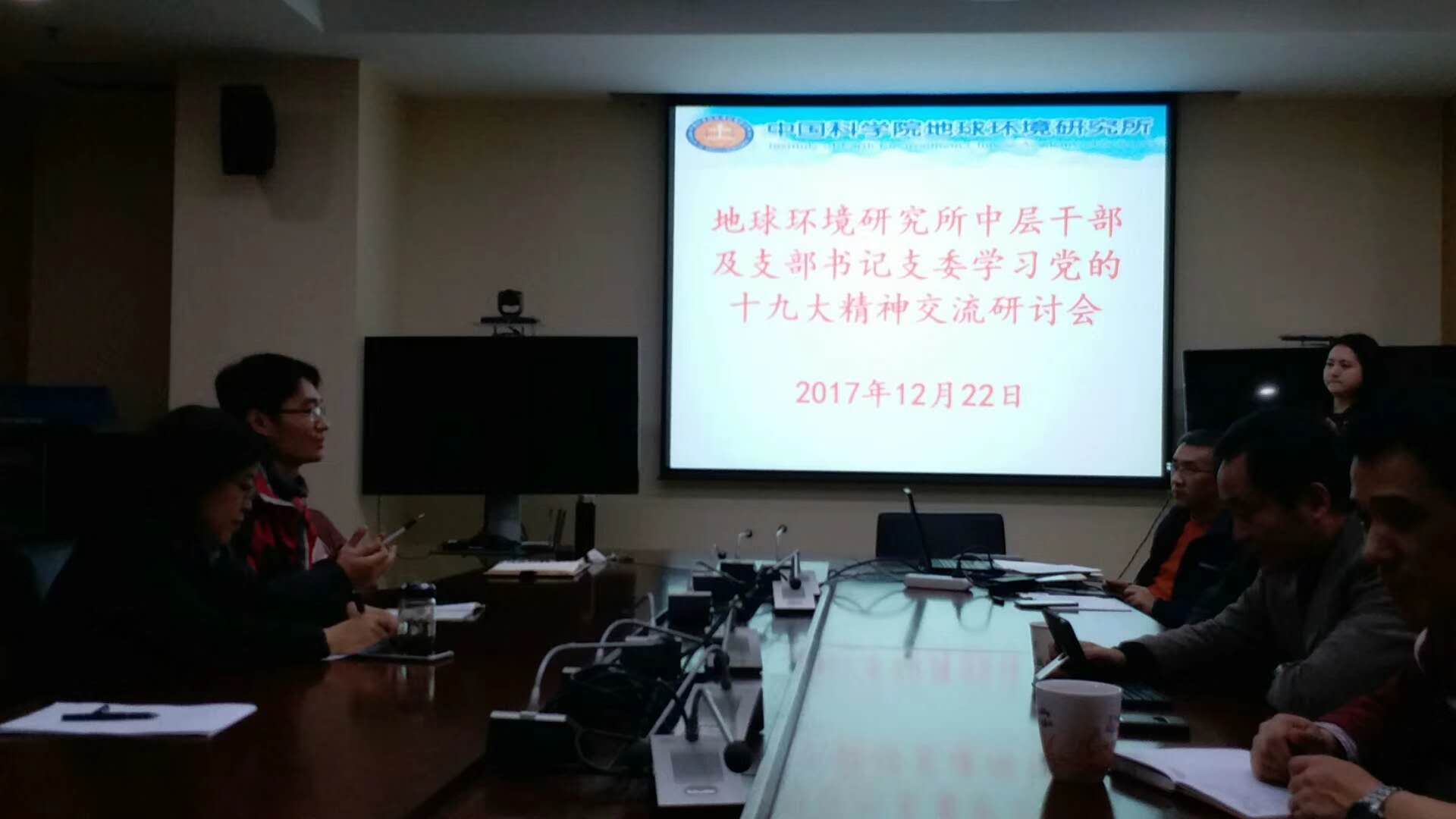 2017年12月22日下午,中科院地球环境研究所召开中层干部及支部书记、支委学习党的十九大精神交流研讨会,在所中层干部、支部书记、支委20余人参加会议。会议由党委委员、纪委副书记李红兵主持。