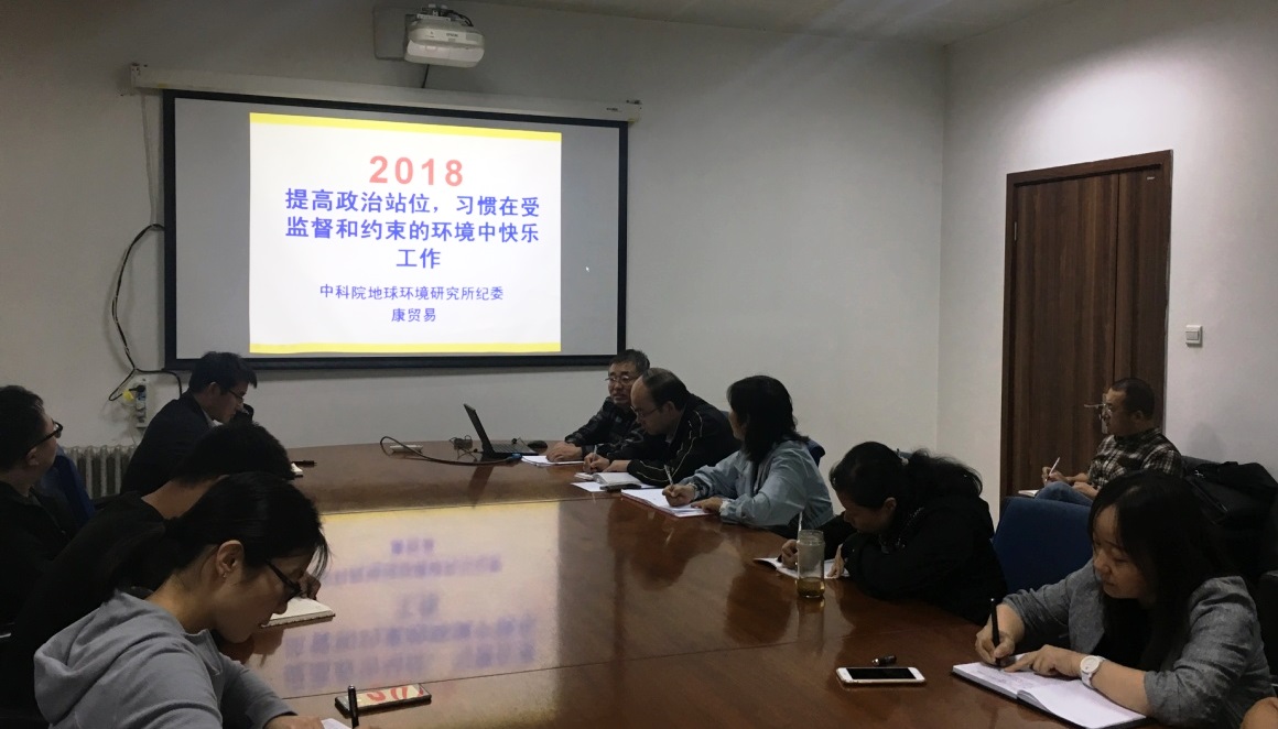 2018年9月25日下午,地球环境研究所行政后勤党支部举行支部学习会,专题学习《中国共产党纪律处分条例》和院2018年夏季党组扩大会议精神。行政后勤党支部书记吕钟锐主持会议。