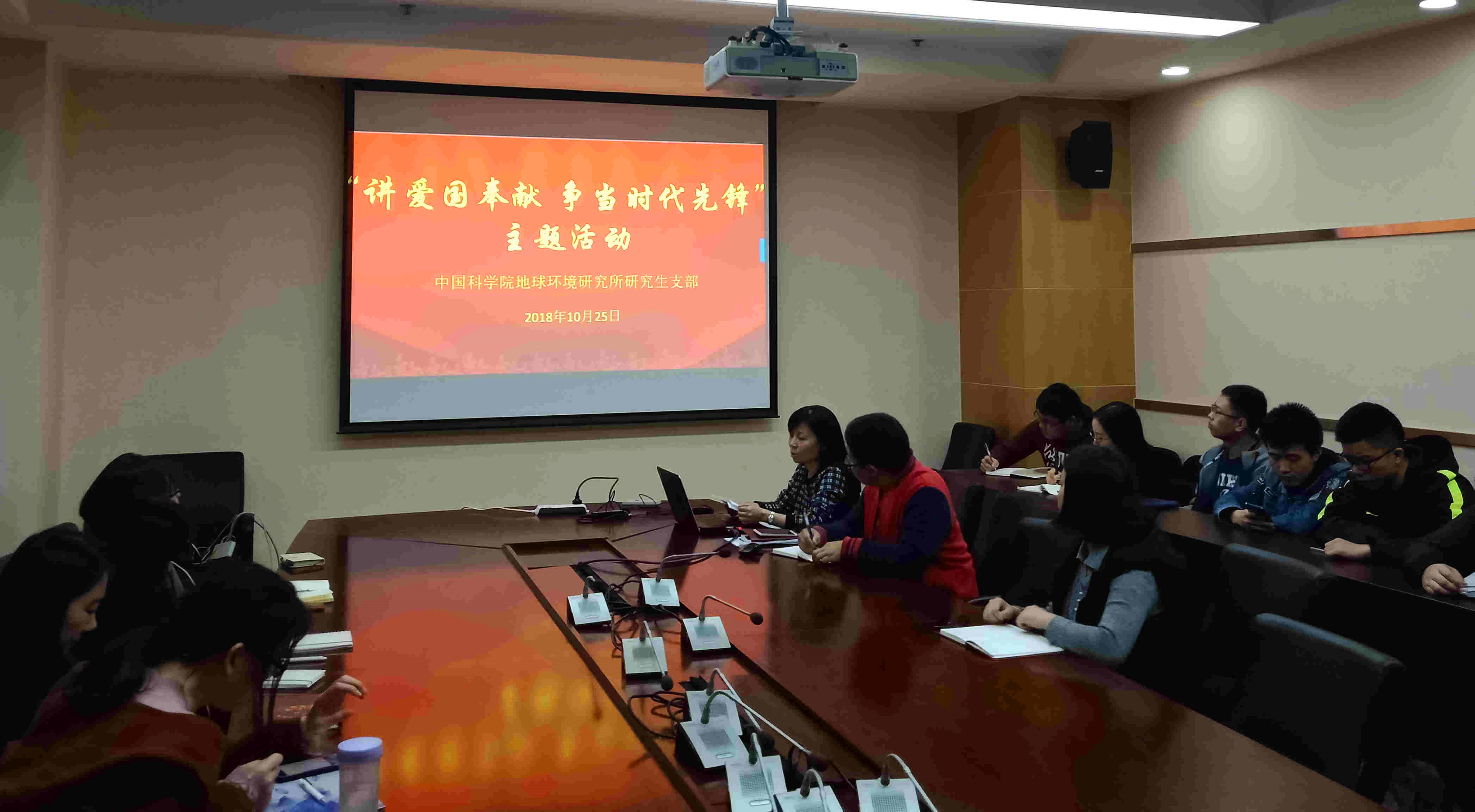 2018年10月26日,地球环境研究所研究生党支部召开全体党员会议,开展“讲爱国奉献,争当时代先锋”主题党日活动,支部书记张英雯同志主持活动。