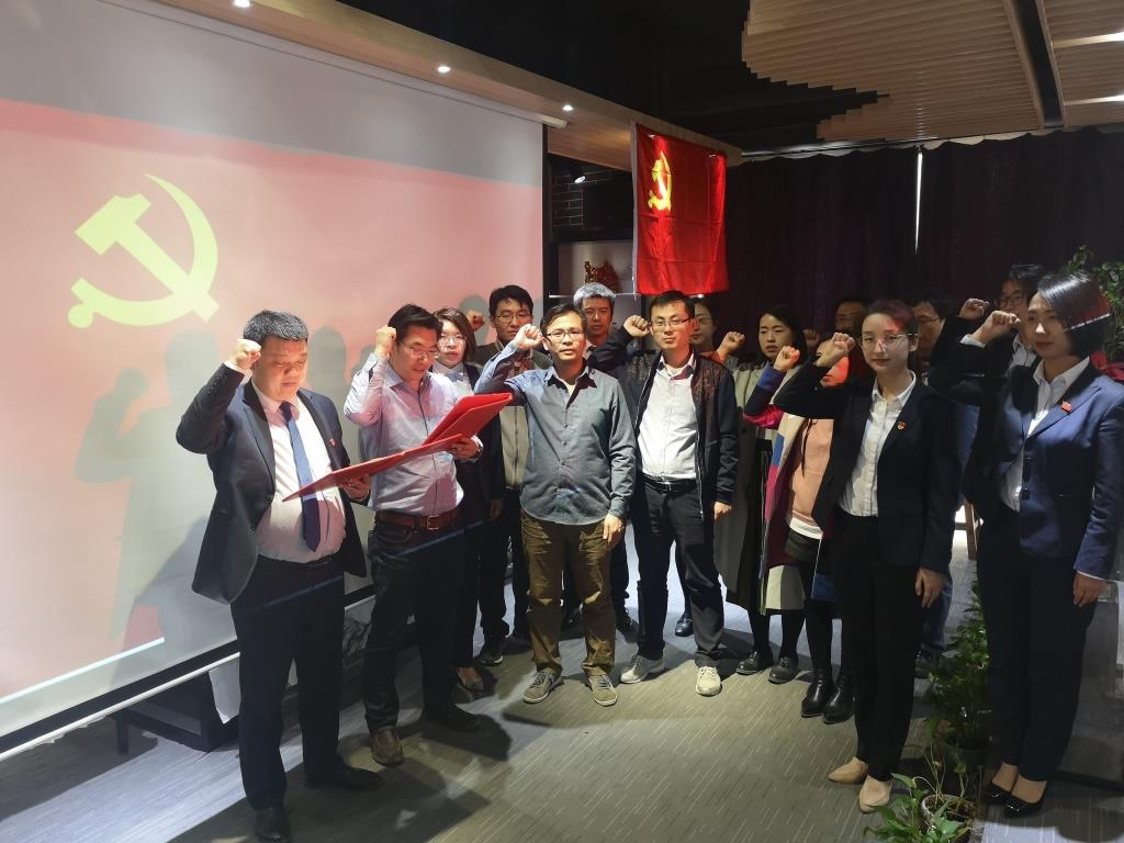 随后,云德律所支部党员胡瑜芝介绍了云德党支部在过去党建工作中取得的成绩和取得的经验,地环所第五支部书记金钊就我所的相关业务情况和科研第五党支部2018年党建情况进行了介绍。党建工作汇报后,科研第五党支部与云德律所党支部举行了党建联建签约仪式,并互赠党建书籍,以促共建。最后由双方党支部书记作为领誓人,在党旗下带领党员重温入党誓词。