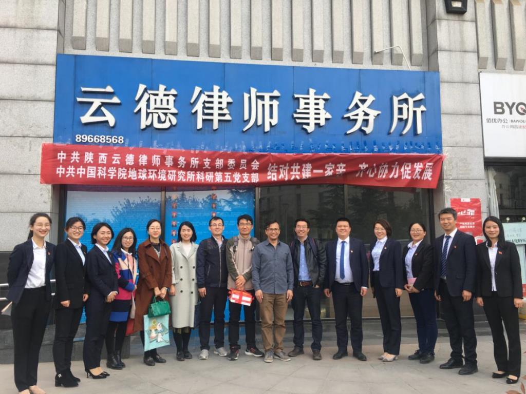 2019年4月3日下午,中科院地球环境所科研第五党支部九名党员在支部书记金钊研究员的带领下,前往陕西云德律师事务所开展党支部联建共建的交流结对活动,通过跨行业形式来促进党支部开展深入开展党建工作。陕西云德律师事务所党支部书记胡小青以及田珺、陈冬杰、曹佳颖、胡瑜芝等十余名党员律师共同参加活动。