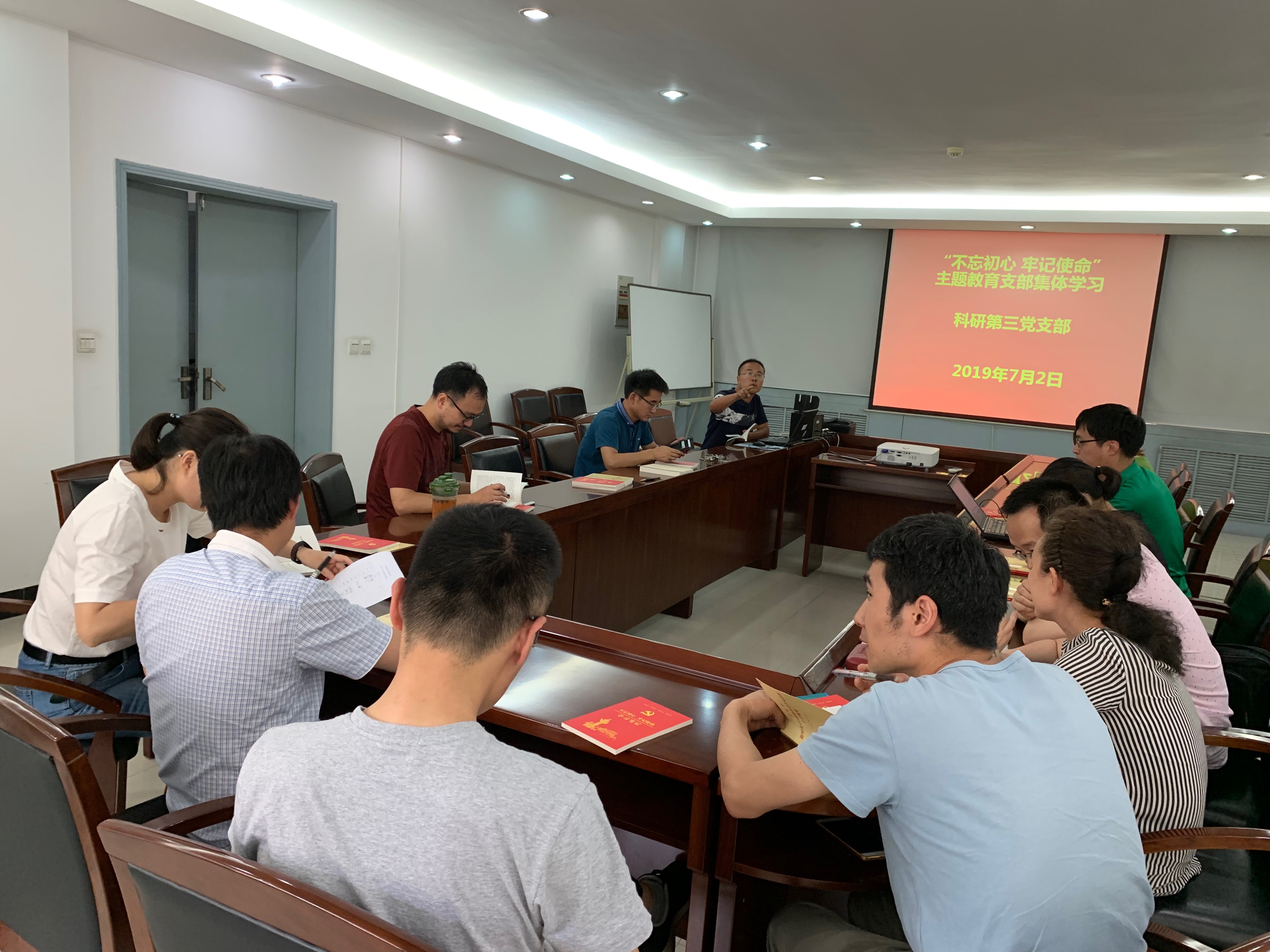 7月2日上午,根据研究所党委“不忘初心,牢记使命”主题教育活动的工作部署,科研第三党支部围绕主题教育活动进行集体学习,集体学习由支部书记鲜锋主持,所党委委员武振坤参加并对学习活动进行指导。