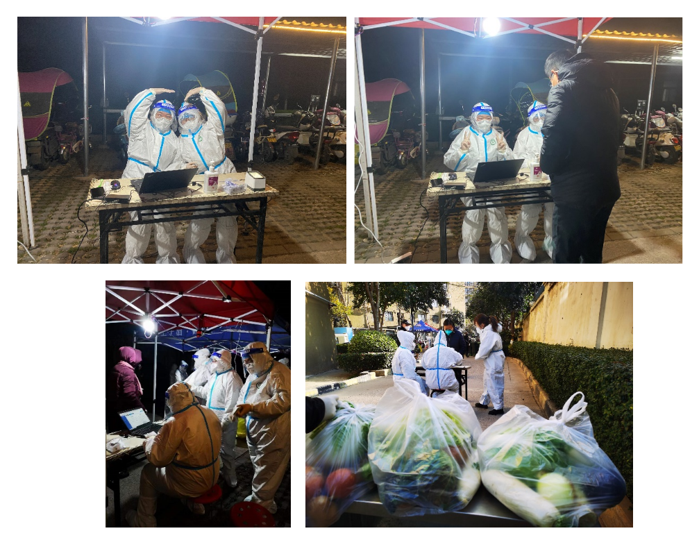 居家办公期间,科研第五党支部积极响应地球环境所党委号召,要求支部党员发扬建党精神,在打赢疫情防控歼灭战中积极发挥作用。科研第五党支部党员李彦祯同志和臧婧杰同志,在做好自身防护的同时,发挥模范带头作用,积极投入到抗疫一线中。两位同志主动请缨,志愿协助社区医护人员进行核酸检测登记、现场秩序维护和发放生活物资工作,分担社区工作压力,积极为疫情防控工作贡献自己的力量。他们不惧冬日严寒,耐心地为行动不便的老人和小孩做好核酸检测前的身份登记并发放二维码,为居民搬运和发放蔬菜,履行了一名共产党员的职责,彰显了党员服务基层、服务群众、服务民生的优秀品质。