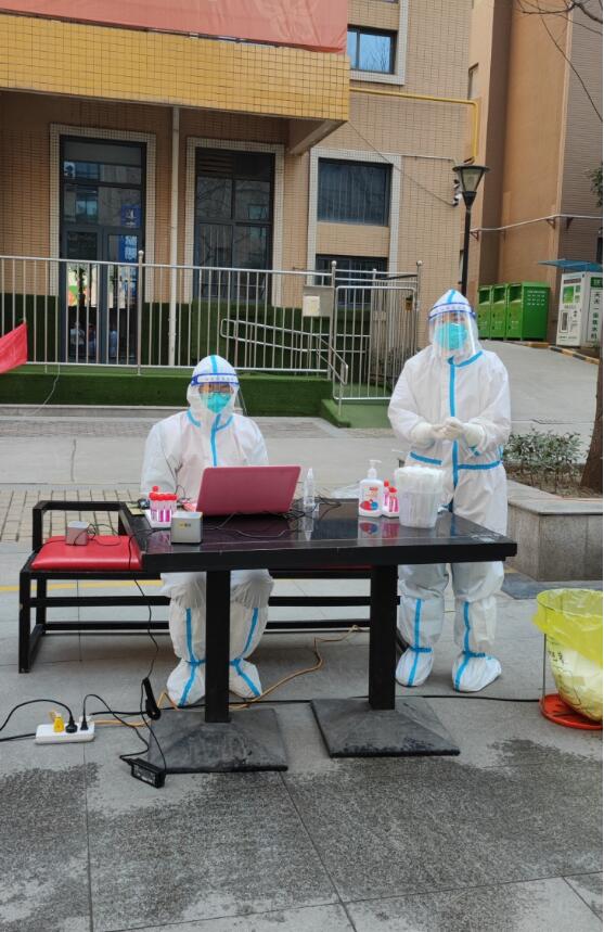 张壮壮,创新院党支部入党积极分子,闹钟响起,简单洗漱后,变身“大白”,又一天采样工作开始了,他一边核对每位采样者的身份信息,一边用手势提醒下一位采样居民要保持好两米距离。室外天气寒冷,时间在核酸采样的过程中慢慢的推移,经常是好几个小时不吃不喝,但采样过程中那些陌生面孔口中道出的一句句感谢,使他又感觉不到了寒冷和饥饿。采样完回家简单吃过饭之后,他又来到小区门卫处开始了一天的执勤工作……