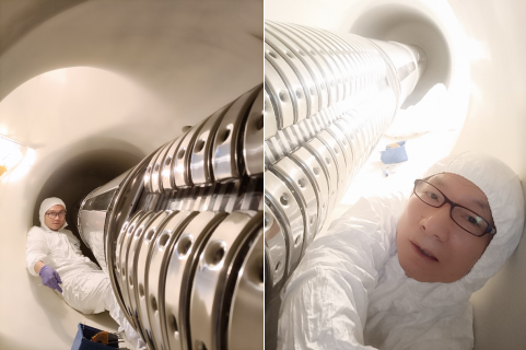 虽然做了详细的预案,但在狭小的钢桶空间内进行维修还是遇到了不可预知的困难和难题。团队中年龄最大的老党员,党龄近五十年的机械专家赵稳年同志主动请缨进桶探查,他的榜样作用激励着团队每一个人,大家斗志昂扬,自行设计制作特殊工具进行拆卸和维修。伴随着维修的进一步深入,也发生了许多不可预知的情况,如一些特殊部件的损坏,如果等待海外备件运回,在疫情和进出口手续的双重影响下,其周期需半年或者更长,这会大大影响科研任务的推进。临时党支部各位同志连续数日奔波于西安市内各地,四处寻找替代方案,最终成功找到了合适的解决方案。在突击队近两个月的艰苦奋战下,终于圆满完成了开桶维修工作,后又经一个月的恢复性测试和运行,现阶段3MV加速器质谱仪已经完全实现正常运行。