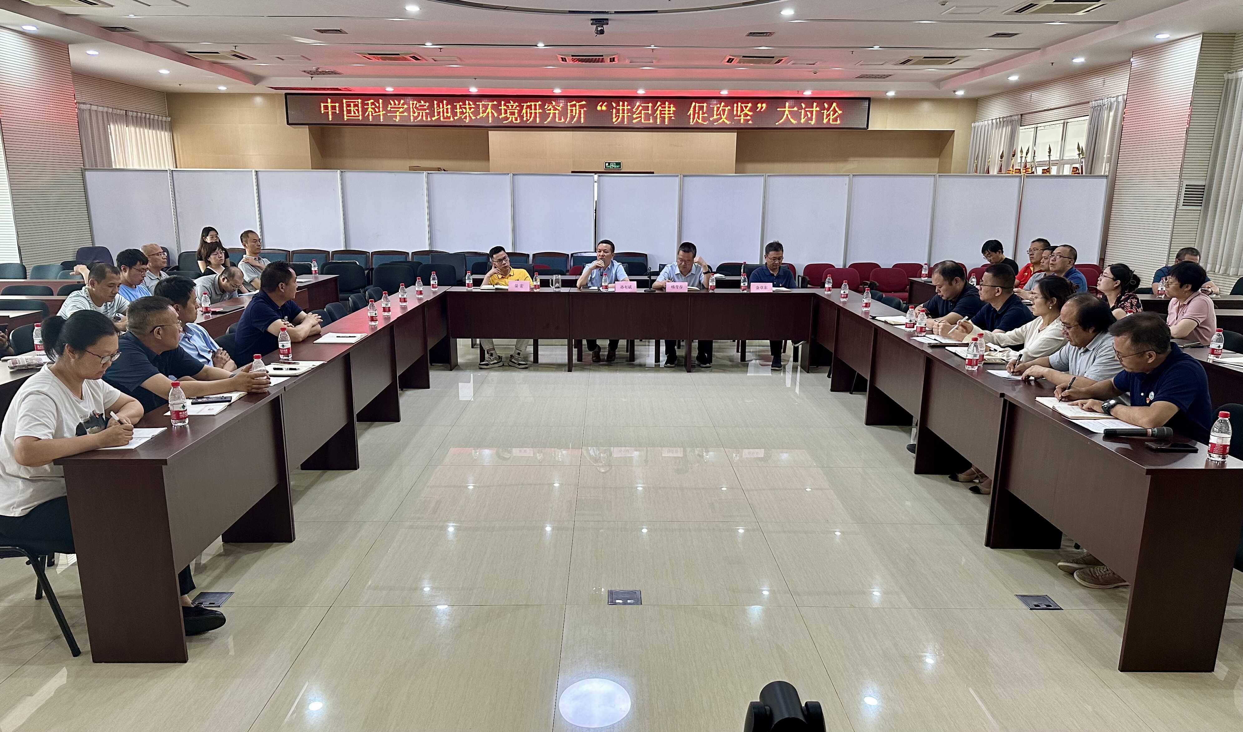 为庆祝中国共产党成立103周年,深入推进党纪学习教育,推动全所广大党员把思想和行动统一到抢占科技制高点核心任务上来,7月2日,地球环境所开展党委理论学习中心组第五次集体学习扩大会暨“讲纪律 促攻坚”调研座谈会。研究所领导班子成员、党委委员、研究室负责人、中层干部、科技攻关突击队负责人等参加会议。西安分院副院长杨青春、科技合作处副处长宋宗玺、党建工作处王艳艳到会指导。