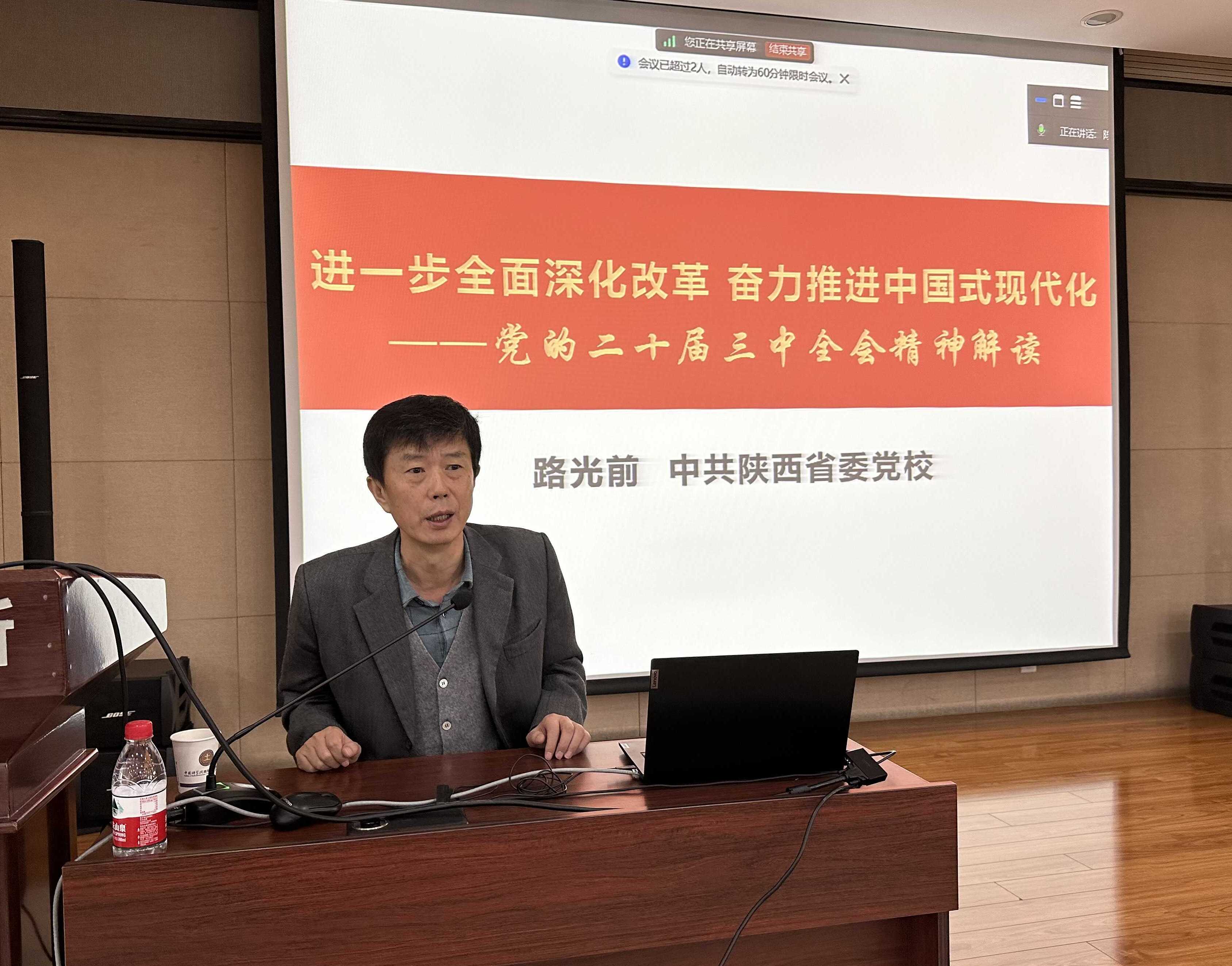 10月24日,中国科学院地球环境研究所党委举办党的二十届三中全会精神专题辅导报告会,邀请中共陕西省委党校副校长路光前作专题辅导报告。报告会以线上线下相结合的方式举行,研究所全体党员、民主党派人士参加。党委书记、所长孙有斌主持报告会。