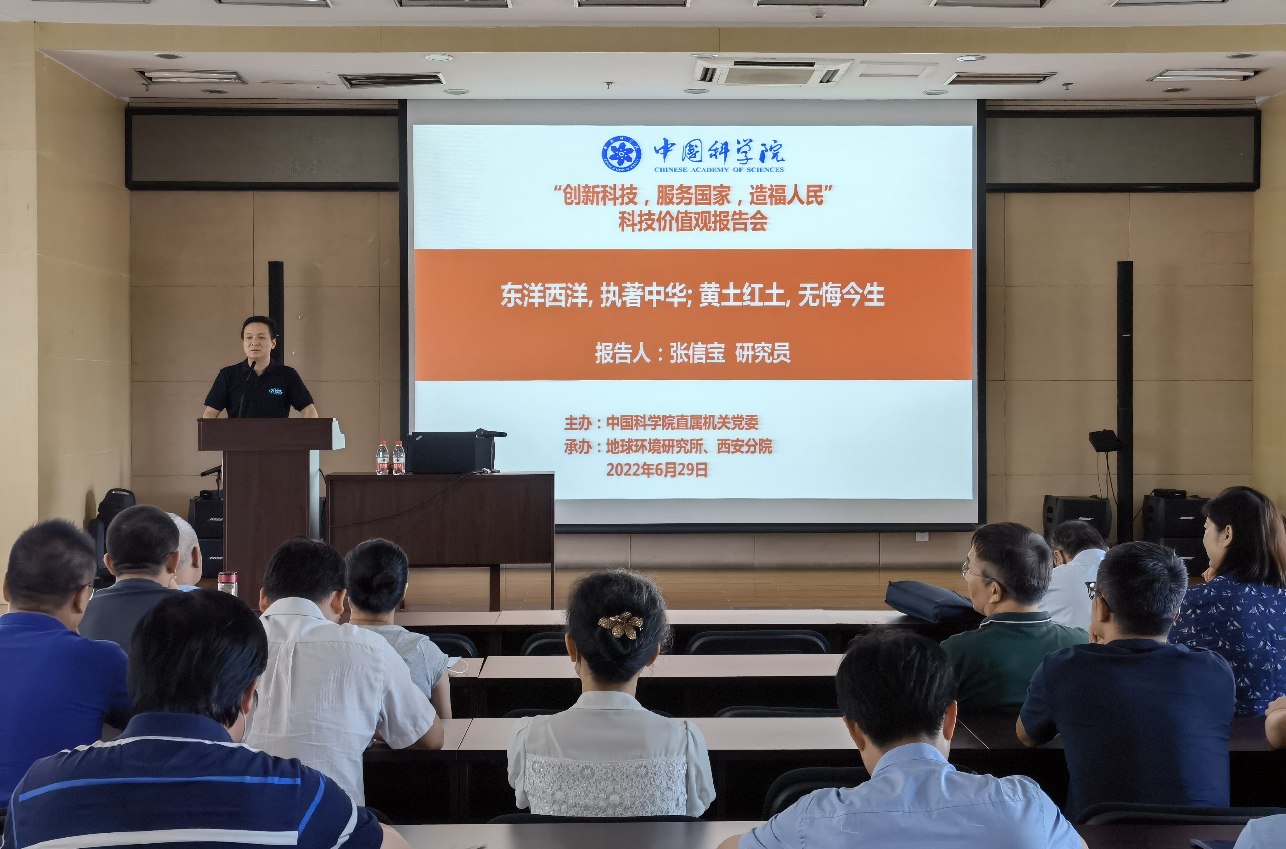 在庆祝建党101周年之际,地球环境所党委于6月29日举行“创新科技,服务国家,造福人民”科技价值观报告会。报告会邀请中国科学院成都山地灾害与环境所张信宝研究员做题为《东洋西洋,执著中华。本次报告会由中科院直属机关党委主办,地球环境所党委和西安分院分党组承办。地球环境所、西安分院、西安地球环境创新研究院党员和科技工作者100余人参会。地球环境所党委书记、所长孙有斌主持报告会。不断提高地球环境所学术影响力,推动地球环境所实现高质量跨越式发展。