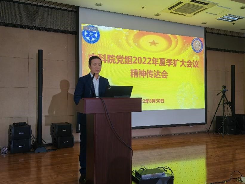 8月18日,中国科学院召开2022年夏季党组扩大会议精神传达会。所长、党委书记孙有斌传达了中科院院长、党组书记侯建国同志在2022年夏季党组扩大会议精神传达会议上所做的《凝心聚力狠抓落实以优异成绩迎接党的二十大胜利召开》主题讲话。