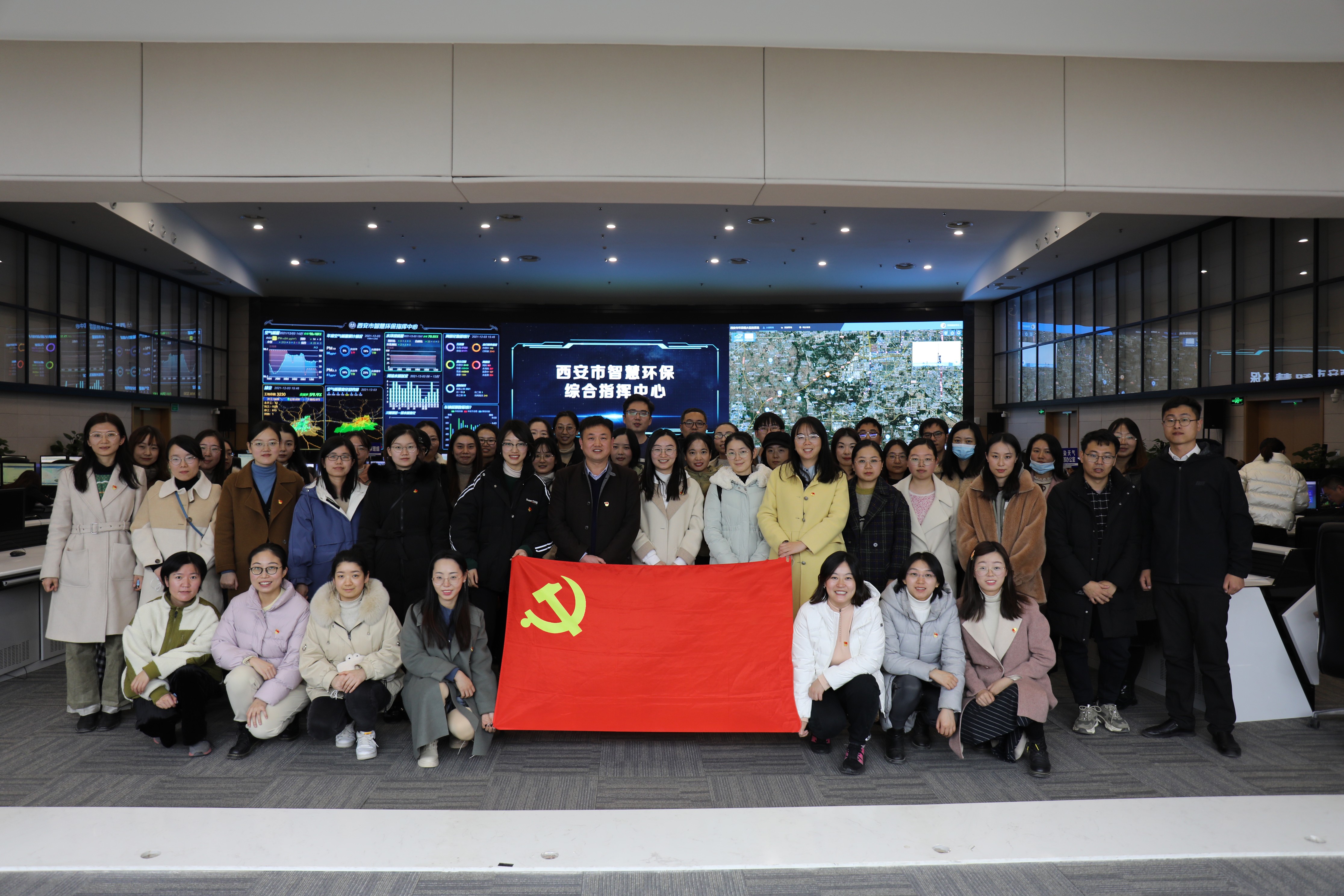 调研活动中,指挥中心工作人员通过大屏演示,详细介绍了西安市智慧环保系统平台各模块的运行程序和功能特色。全体党员通过工作人员的讲解和电子大屏的实时监测数据,深入学习了发挥“千里眼”和“哨兵”作用的空气质量监测站、地表水质自动监测站、工地扬尘监测等环境监测系统;通过观看生态环境保护网格化管理的全过程演示,直观了解了为污染防治织密“天罗地网”、实现环境监测全覆盖的强大政府决心。