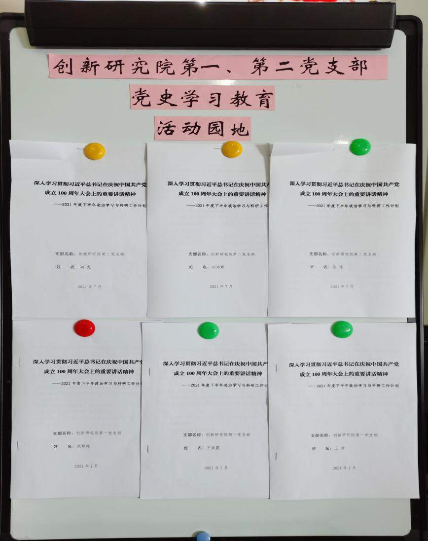 活动中,全体党员积极响应,利用学习讲话原文、观看影音资料、交流心得体会等多种方式,认真学习习近平总书记在庆祝中国共产党成立100周年大会上的重要讲话和中科院党组书记、院长侯建国《学习贯彻习近平总书记在庆祝中国共产党成立100周年大会上的重要讲话精神,强化国家战略科技力量使命担当》专题党课报告。本次活动共收到个人计划53份,党员们结合党史学习,立足各自岗位,聚焦主责主业,根据自身实际,对下半年政治学习和科研工作目标进行了规划和展望。