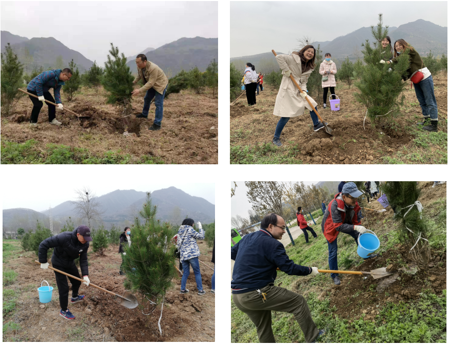 到达目的地后,通过动员讲话使大家更加深刻地认识到此次活动的意义。大家干劲十足,开始分工合作,铲土刨坑、培土围堰、浇水灌木。短短几个小时,院子里的白皮松排成了整齐的方阵,为原本空旷的秦岭观测站增添了一抹新绿,挺拔的树苗如战士般站立着,嫩绿的枝叶格外清新。