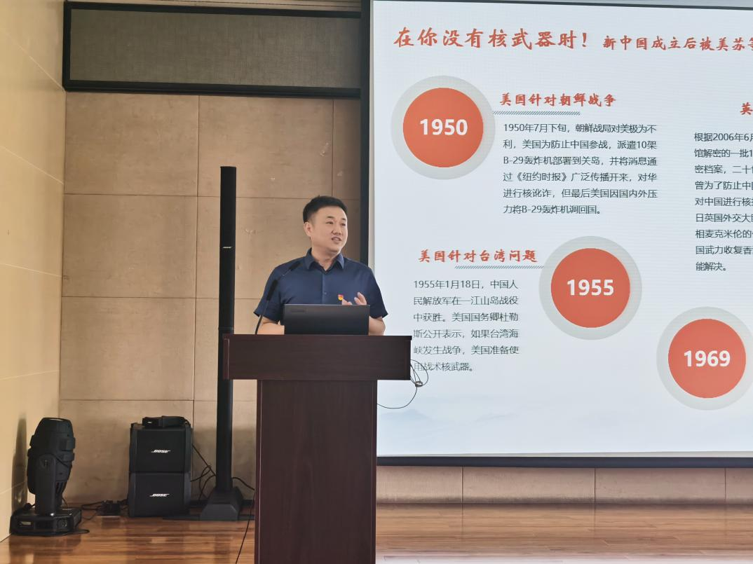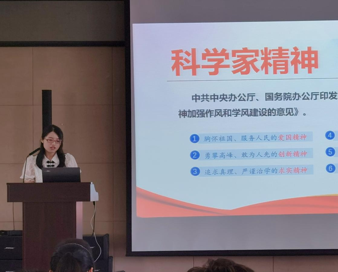 创新研究院第二党支部书记景楠为与会人员讲授“弘扬科学家精神”专题党课,她系统介绍了科学家精神的内涵,讲述钱学森、邓稼先、郭永怀、朱光亚等老科学家义无反顾放弃海外优渥工作和生活条件,全力以赴、毫无怨言投身祖国最需要的地方,他们静心笃志、心无旁骛,在科研中下“真”功夫、“细”功夫,他们“干惊天动地事,做隐姓埋名人”,解决了国防科技“卡脖子”问题,让国家牢牢掌握发展自主权,他们甘做致力提携后学的“铺路石”和领路人,用热血和生命,谱写了为祖国和人民鞠躬尽瘁、死而后已的人生华章。