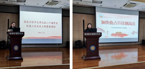 1月25日下午,西安地球环境创新研究院党总支组织全体党员传达学习二十届中央纪委三次全会精神及中国科学院2024年工作会议精神,并邀请科研骨干交流分享科研心得。创新研究院党总支书记刘春卓主持会议,全体党员参加学习,20余名非党员职工列席会议。