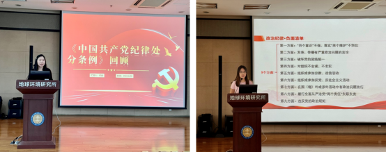 根据中国科学院地球环境研究所党委党纪学习教育部署安排,6月20日上午,创新研究院第一党支部开展党纪学习教育——支部书记讲党课和纪检委员讲案例活动,会议由支部书记任淼主持。
