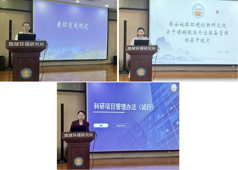 武振坤同志代表所党委强调了抢占科技制高点背景下“深化党纪学习教育 严明岗位工作纪律”的重要意义,传达了中国科学院党组对“三项制度”专项工作的部署和要求。马慧同志对研究所兼职管理实施细则和考勤与请销假制度进行宣贯,她详细介绍了兼职类型及其审批流程,仔细梳理了考勤与请销假相关规定。汶玲娟同志对研究所科研项目申报管理进行宣贯,她重点介绍了研究所“白名单”项目及以外项目的申报要求和审批流程,强调了研究所强化使命定位,聚焦主责主业,抢占科技制高点的科研工作导向。有利于创新研究院职工准确理解所在课题组或处室的管理工作,规范融入所在课题组或处室的业务工作。