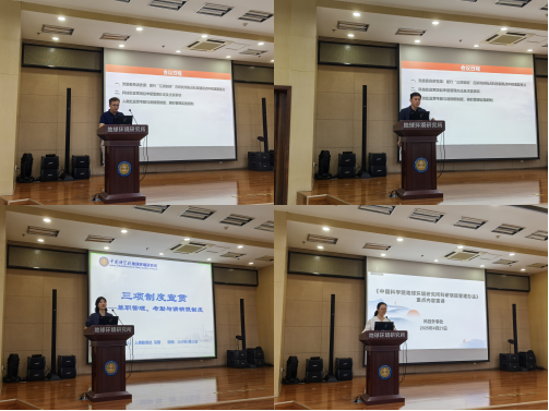 科技外事处汶玲娟解读《中国科学院地球环境研究所科研项目管理办法》,详细介绍项目申报的管理办法及注意事项,指出项目申报工作要紧密聚焦抢占科技制高点这一核心任务,力争承担重大科研任务。人事教育处马慧对兼职管理和考勤与请销假制度进行讲解,强调科研人员与管理人员必须严格遵守兼职制度,落实事前审批报备要求,严禁泄露研究所秘密或损害、侵害研究所合法权益。同时,全体工作人员应严格遵守考勤与请销假制度,各部门要切实履行管理责任,实行部门负责制。
