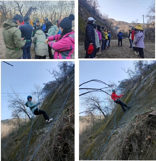 绳索技术是野外生存技能中的重要一环,掌握绳索技能,能大幅提升野外运动风险把控能力。在国家级攀岩教练的指导下,各位党员同志首先了解了野外技术装备、野外常用绳结等基础知识,并进行了系绳结练习;随后,分为两组,亲身体验了野外岩降。在岩降过程中,各位同志挑战了心理恐惧,体验了与自己抗争并取得成功的乐趣,增强了自信心。