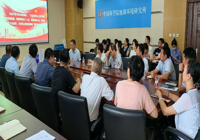 8月23日,地球环境所党委副书记、副所长金章东以《坚持以人民为中心,扎实推动共同富裕》为题作专题党课报告。粉尘与环境研究室党支部与地表过程与生态环境研究室党支部全体党员参加报告会。报告会由粉尘与环境研究室党支部书记黄宇主持。
