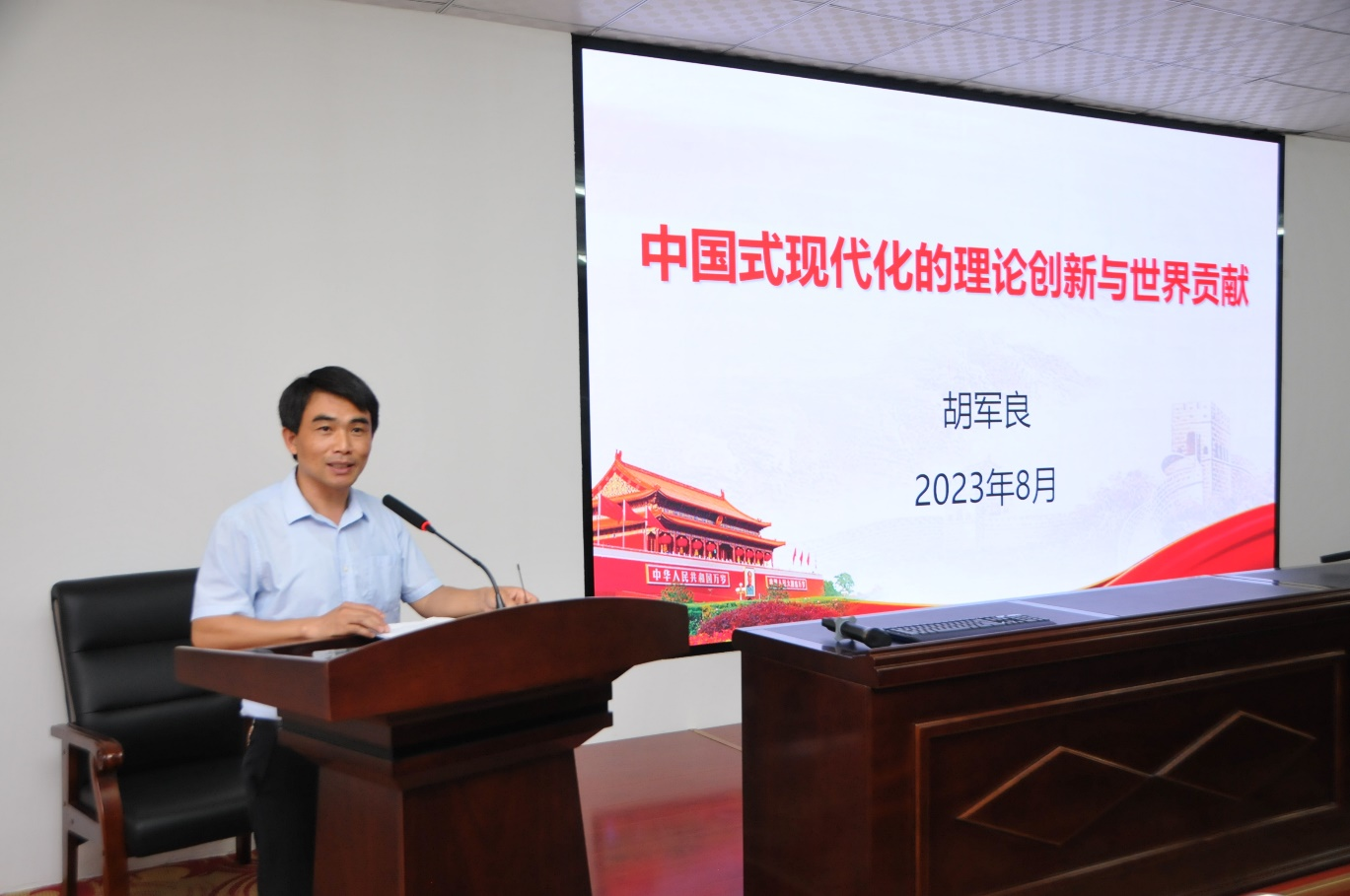 与会同志听取了西北大学哲学学院副院长、博士生导师、西安市政协委员胡军良教授的主题讲座报告——《中国式现代化的理论创新与世界贡献》。胡院长从中国式现代化的科学内涵、理论创新、世界贡献三个方面进行系统宣讲和深入阐释,进一步加深了大家对中国式现代化的理解和认识。