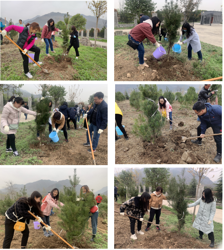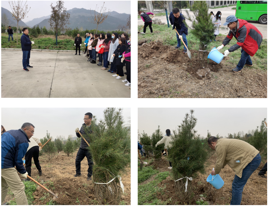 到达目的地后,通过动员讲话使大家更加深刻地认识到此次活动的意义。大家干劲十足,开始分工合作,铲土刨坑、培土围堰、浇水灌木。短短几个小时,院子里的白皮松排成了整齐的方阵,为原本空旷的秦岭观测站增添了一抹新绿,挺拔的树苗如战士般站立着,嫩绿的枝叶格外清新。