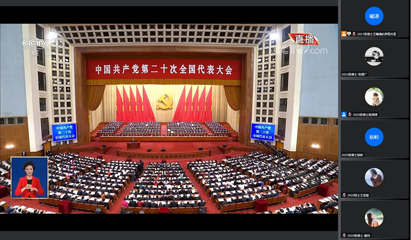 2022年10月16日,中国共产党第二十次全国代表大会在北京隆重开幕。会议主题是:高举中国特色社会主义伟大旗帜,全面贯彻新时代中国特色社会主义思想,弘扬伟大建党精神,自信自强、守正创新,踔厉奋发、勇毅前行,为全面建设社会主义现代化国家、全面推进中华民族伟大复兴而团结奋斗。中国科学院地球环境研究所研究生党支部积极响应,组织全体党员、发展对象和积极分子线上观看会议直播,认真学习习近平总书记在大会上所作的报告。