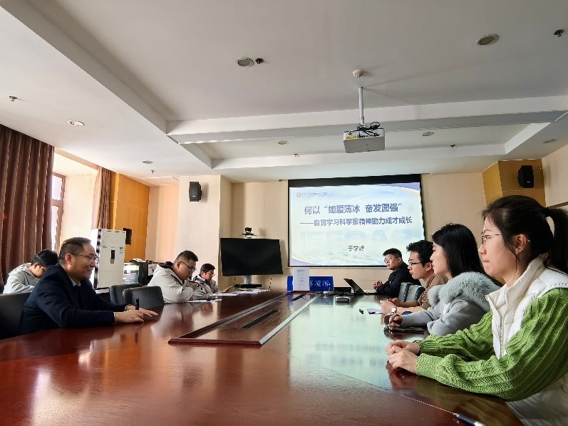 会上,于学峰以研究所发展历程为脉络,结合个人在所工作期间的亲身经历与感悟,通过鲜活事例深刻诠释了“如履薄冰、奋发图强”黄土精神的时代内涵与价值底蕴。他指出,这一精神是研究所攻坚克难、勇攀科学高峰的动力源泉,激励着一代代科研工作者在探索地球环境奥秘的征途上始终保持清醒忧患意识与不懈奋斗姿态。