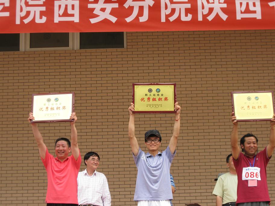 取得这些完美的结局,离不开运动员的努力,同时也离不开我所工会王丹老师辛苦的工作,是您跑前跑后给大家置办运动会所需的器材,是您组织大家进行锻炼,是您为我所参加项目的运动员做好了后勤工作。因此,我所在此次陕西省科学院职工运动会中取得了“优秀组织奖”的荣誉。本次运动会让我们在运动中体验到协作,在运动中学会拼搏,在运动中学会了承受。为今后大家在科研道路上打下了坚实的身体基础。
