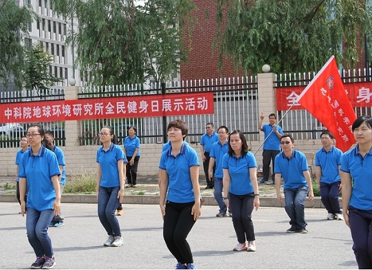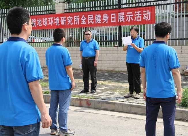 为积极响应中国科学院“全民健身日”的活动号召,鼓励和引导广大职工群众积极参加体育活动,提高科研人员身体素质,丰富职工和学生文体活动。在所工会的精心组织下,2016年6月7日上午,中国科学院地球环境研究所组织开展了以“全民健身、科学同行”为主题的“全民健身日”展示活动。周卫健所长在活动仪式上发表讲话,她希望大家秉承毛泽东同志“发展体育运动、增强人民体质”的科学理念,积极参与体育锻炼,追求健康文明的生活方式,以良好的身体素质大力推进“一三五”规划实施,促进研究所实现跨越式发展。刘禹副所长和刘晓东副所长也参加了这次活动。
