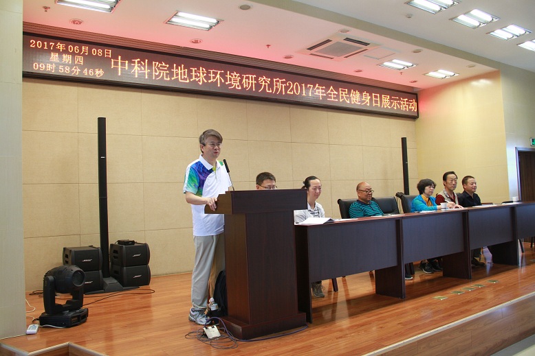 为贯彻落实《全民健身条例》和全民健身计划(2016-2020年),鼓励和引导广大职工群众增强体育健身意识,提高科研人员身体素质,丰富职工和学生文体生活,所工会精心组织全体职工和学生在2017年6月8日上午在中国科学院地球环境研究所开展了以“全民健身、科学同行”为主题的“全民健身日”展示活动。