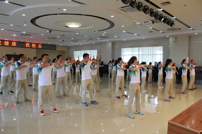 本次活动共分为两个环节:第九套广播体操展示及啦啦操表演。随着刘禹所长一声号令“全民健身日”展示活动正式启动,第九套广播体操那熟悉的音乐响起,地环所队员们昂首挺胸,伸展,扩胸、转体、踢腿……动作娴熟,张弛有度,充盈着刚健之美。在两轮广播体操展示结束后,所工会精心为大家聘请的西安体育学院的专业教练指导的啦啦操汇报演出,从基本动作、动作设计到表演曲目都是那么浑然天成,集体操、舞蹈、音乐、健身、娱乐于一体,更集团队协作、奋发向上、自信热情于一身,全面展现出了地环所人朴实的科研情愫下那张扬热烈、朝气蓬勃的精神力量。