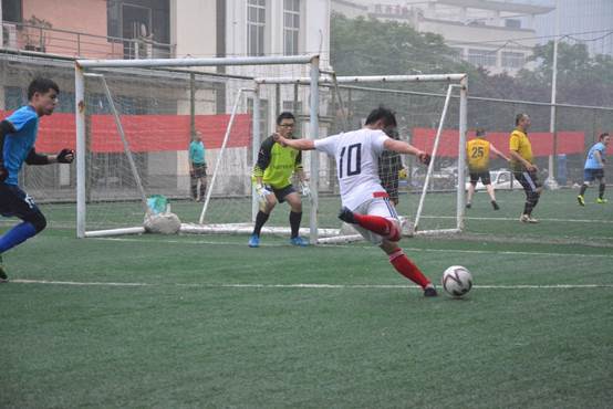 范煜坤(10号)起脚射门-地环所足球队对阵光机所2队,4:4战平