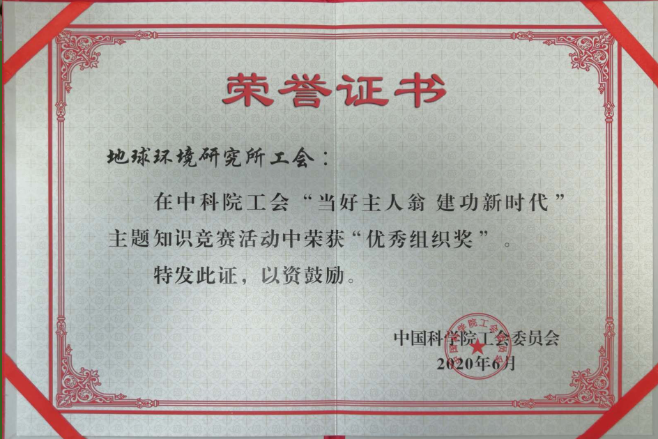 为庆祝中华全国总工会成立95周年,院工会于2020年4月至5月在全院开展了“当好主人翁 建功新时代”主题竞赛活动。所工会积极响应院工会的活动,积极动员全体工会会员参加这次答题活动。参加答题的人员达77人次,参与率51.33%。在参加“当好主人翁 建功新时代”主题竞赛活动中荣获优秀组织奖。