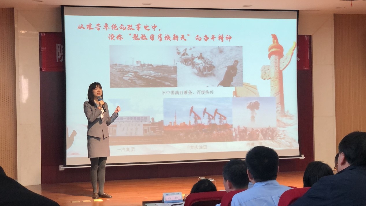 此次演讲比赛共有13位选手。我所选手赵雪带来了题为《铭记党史,砥砺前行》的演讲表演,芮晨悦献上了《读你千千万万遍》。她们声情并茂、慷慨激昂,从个人成长讲到身边老一辈科学家,从近代中国历史讲到中国共产党带领我们实现民族独立、国家发展、民族复兴的伟大征程,深深打动了比赛评委和现场观众,最终分别获得本次比赛的优秀奖和三等奖。