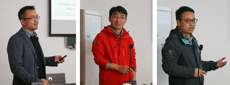 会议上半场由西北大学段洪涛教授主持,由中国科学院地球环境研究所晏宏研究员介绍古天气研究的新方向;石正国研究员介绍沙尘辐射效应对亚洲季风的影响;王启元副研究员介绍大气黑碳气溶胶理化性质与来源;张飞副研究员介绍大地震对地表过程的影响;以及西北大学城市与环境学院邱海军教授介绍基于InSAR的滑坡动态监测;张玉柱副教授介绍黄河流域末次冰消期以来的古洪水研究。