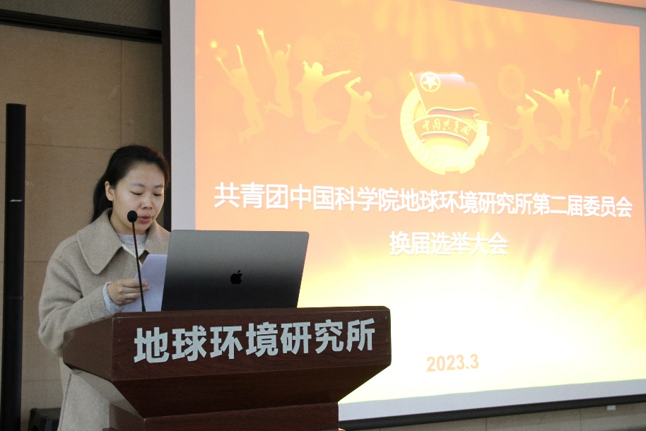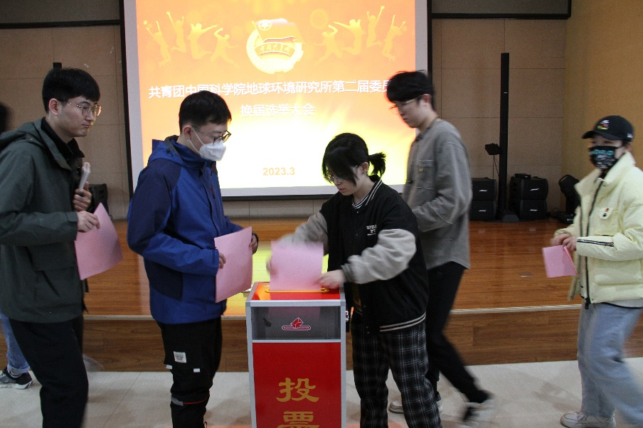 王艳艳同志宣读了中科院西安分院团工委《关于地球环境研究所第二届团委委员候选人的批复》。随后大会审议通过了委员正式候选人名单及大会选举办法和总监票人、监票人、计票人名单,并介绍了委员候选人基本情况。大会选举工作由总监票人杨维帆同志主持,通过无记名投票、差额选举的方式,选举王璇、李璟瑜、张鹏、郑茜、贾凡同志为共青团中科院地球环境研究所委员会委员。