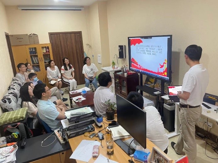 2021年6月29日下午,党支部在212会议室继续开展了“党史在心中”第四专题的学习活动,会议由支部书记王云强同志主持。会上,王云强同志就前三个专题的党史学习,向大家分享了党史学习感悟:学史明理、学史增信、学史崇德、学史力行。习近平总书记曾在党史学习教育动员大会上强调:“我们党的历史,就是一部不断推进马克思主义中国化的历史,就是一部不断推进理论创新、进行理论创造的历史。”100年来,我们党在实践中不断丰富和发展马克思主义,完成了一个又一个被认为不可能完成的任务,取得了一次又一次“当惊世界殊”的胜利。王云强同志对支部全体党员提出了希冀:作为一名基层党员,我们必须在做好科研工作的同时,把党的历史学习好、总结好,把党的成功经验传承好,发扬好。
