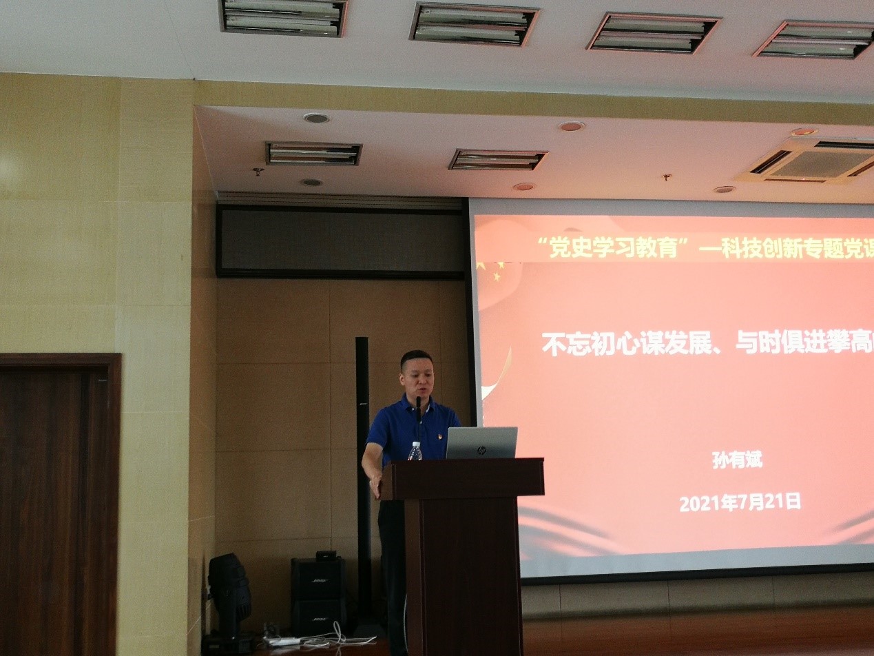 7月21日上午,地球环境所党委举行所局级领导讲党课报告会。地环所党委委员、副所长孙有斌同志做题为《不忘初心谋发展,与时俱进攀高峰》的党史专题党课报告。会议由纪委书记康贸易同志主持。全体党员同志及副高以上专业技术人员参加报告会。